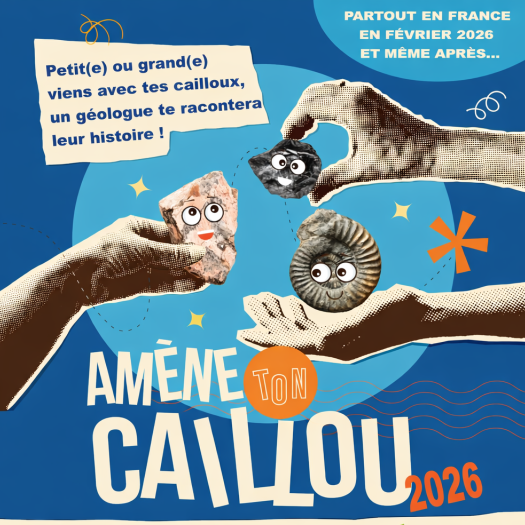 Amène ton caillou est une initiative nationale portée par la Société géologique de France. Le principe est simple : le public est invité à apporter un caillou, trouvé lors d’une balade, transmis en souvenir de famille ou à l’origine d’une passion naissante, et à le soumettre à un géologue. Qui est-il ? D’où vient-il ? A-t-il une particularité ou une histoire remarquable ? L’objectif est d’échanger et de discuter autour des roches, dans une démarche accessible à tous.